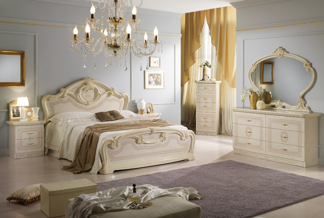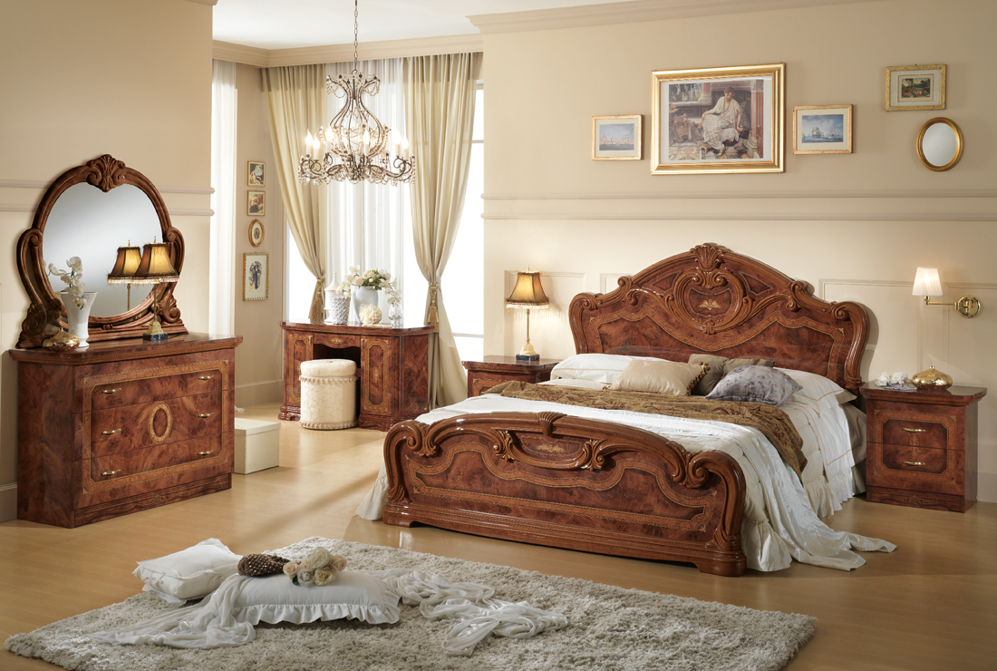 Alla grande generosità delle forme, la camera aggiunge la ricchezza di movimento offerto dai disegni propri del legno in combinazione con i temi decorativi tipici di questa collezione. Nasce una camera importante, per chi ama la sovrabbondanza di ornamento.
