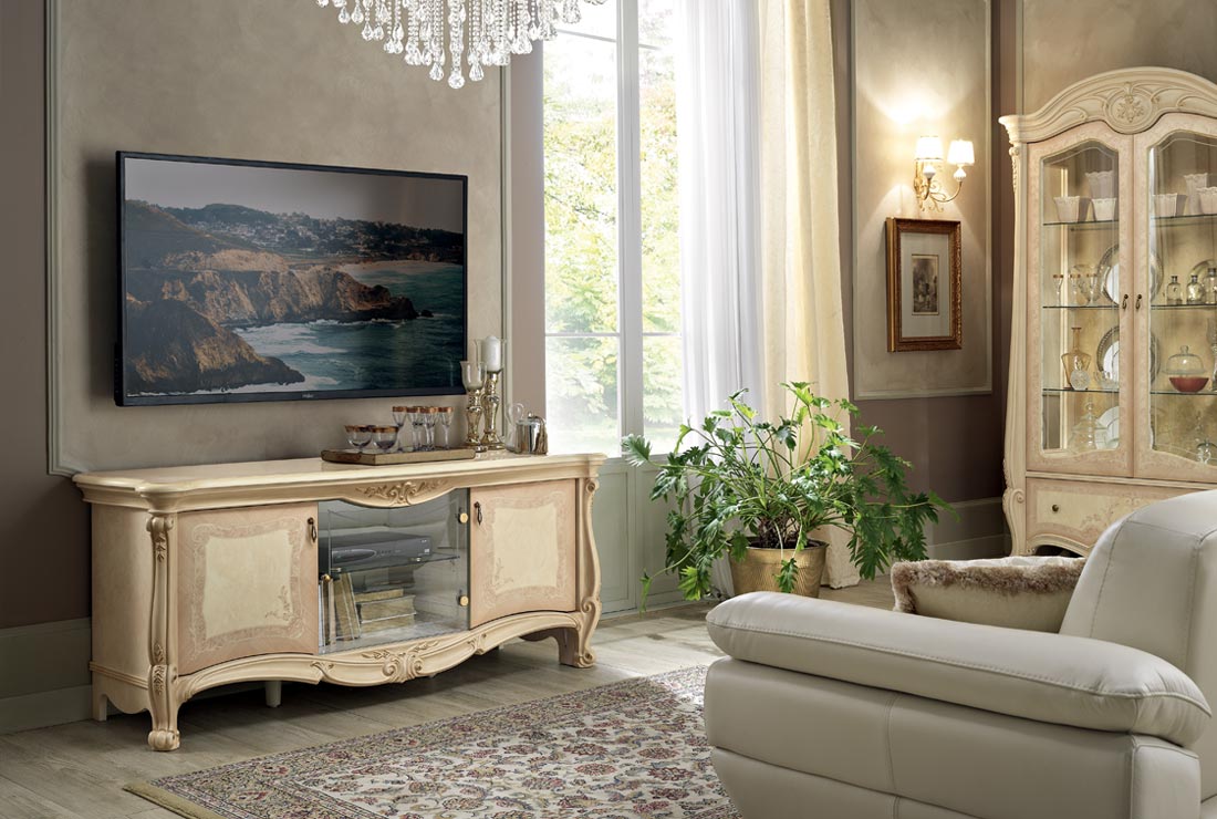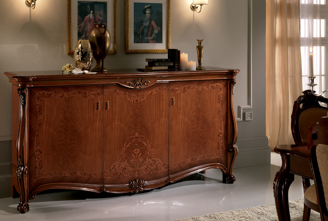 • La collezione Sovrana raccoglie tutte le forme e le caratteristiche più evidenti della tradizione classica italiana: il vero legno, l’intaglio, l’intarsio, le linee barocche, la trapuntatura. Nascono così mobili che sono un vero spettacolo per la vista.