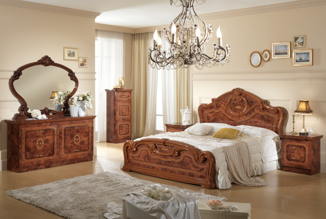 Non c’è risparmio di forme e di fregi, di in questo soggiorno dal sapore orgogliosamente italiano. Ogni elemento, dal tavolo alle poltroncine, alla credenza e al comò, tutto ispira grande fascino, sana ostentazione e genuina tradizione.