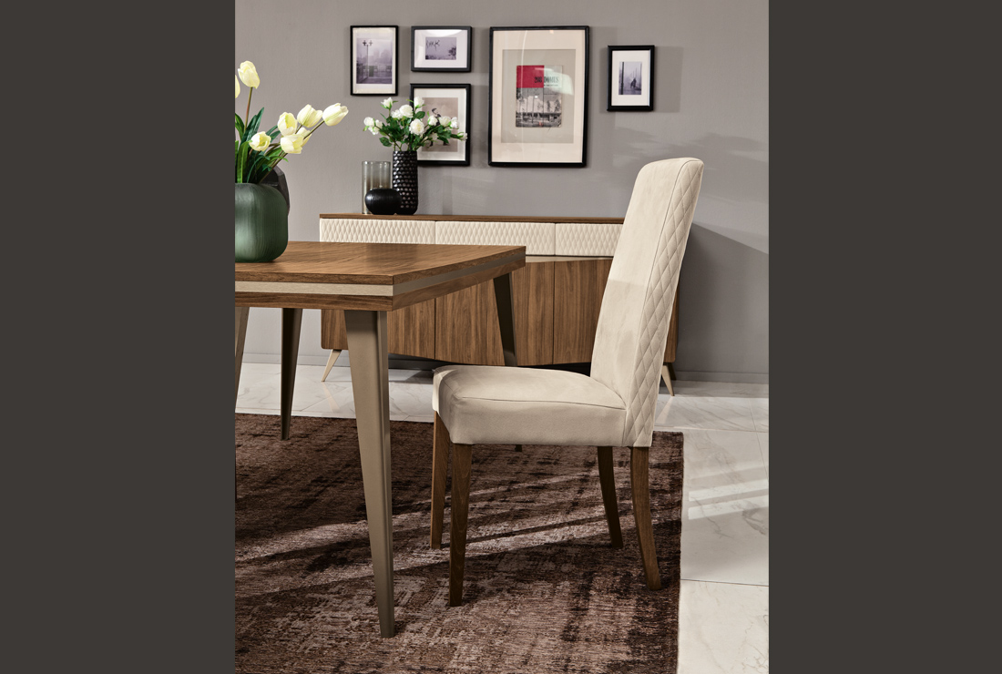 Questa trapuntatura a piccoli rombi esalta la modernità, che non è mai distacco, ma evoluzione dell’arte mobiliera.